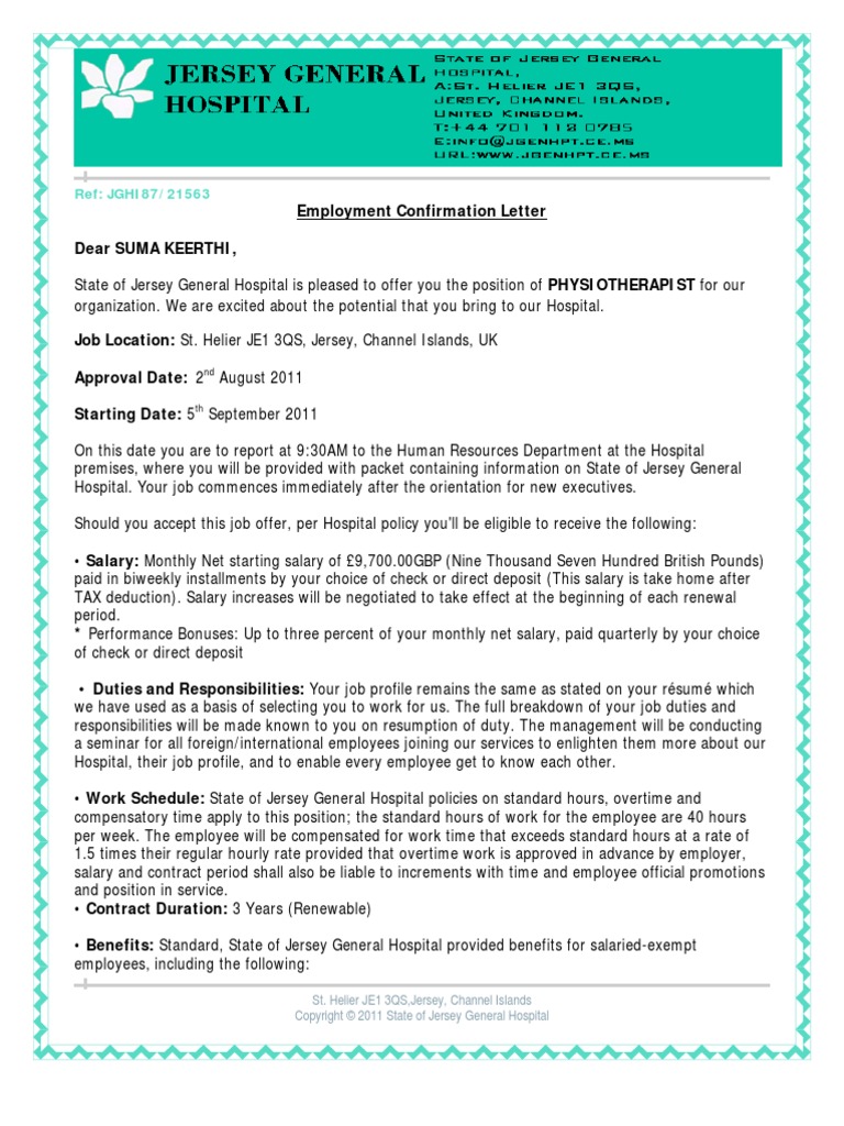 10+ Confirmation Letter Job. Sample employment confirmation letter from employer for permanent jobs. Sample employment verification letter and templates, to confirm a person is or was employed by a company, with tips for writing and requesting.